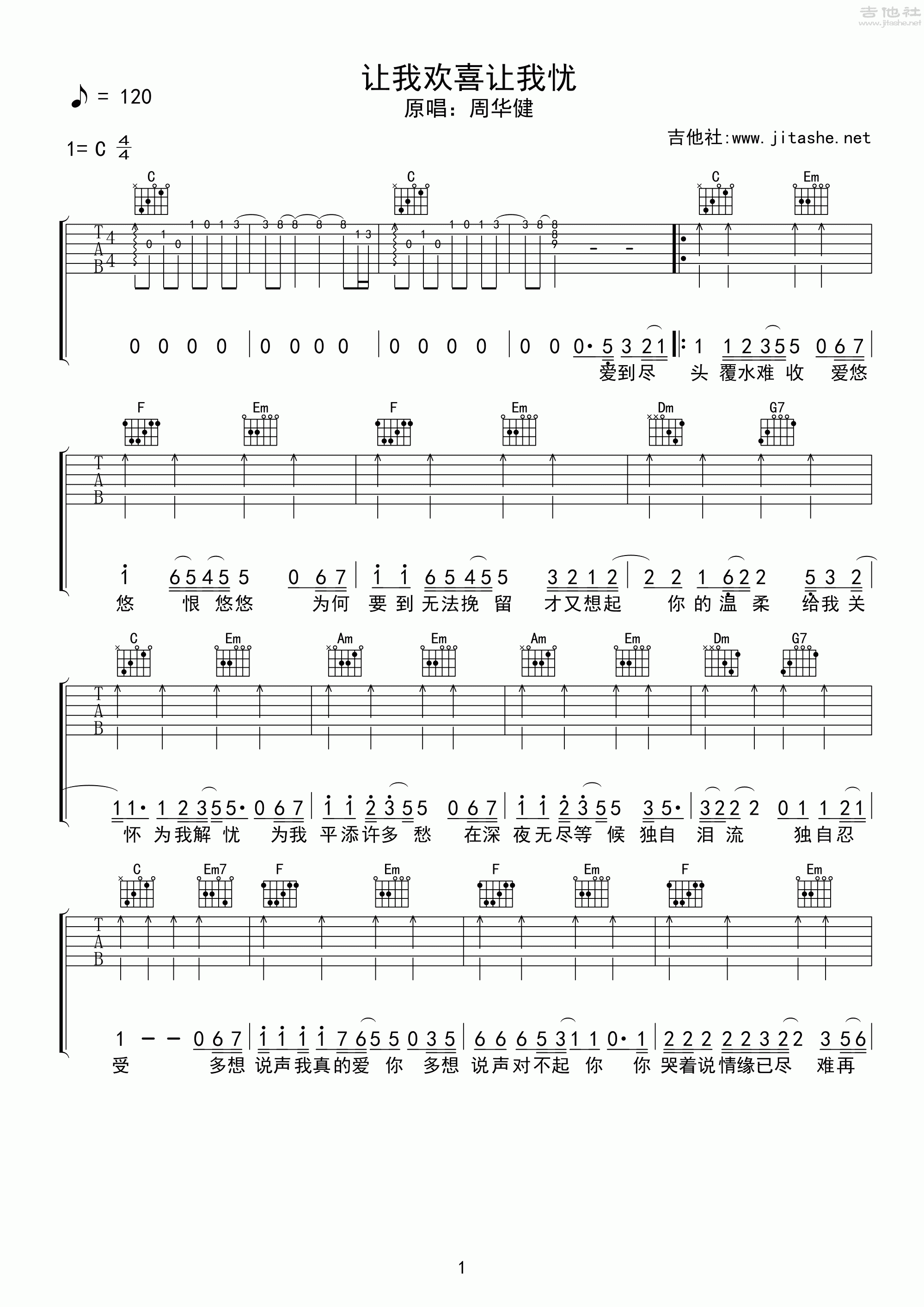 周华健 - 让我欢喜让我忧 [弹唱 扫弦] 吉他谱