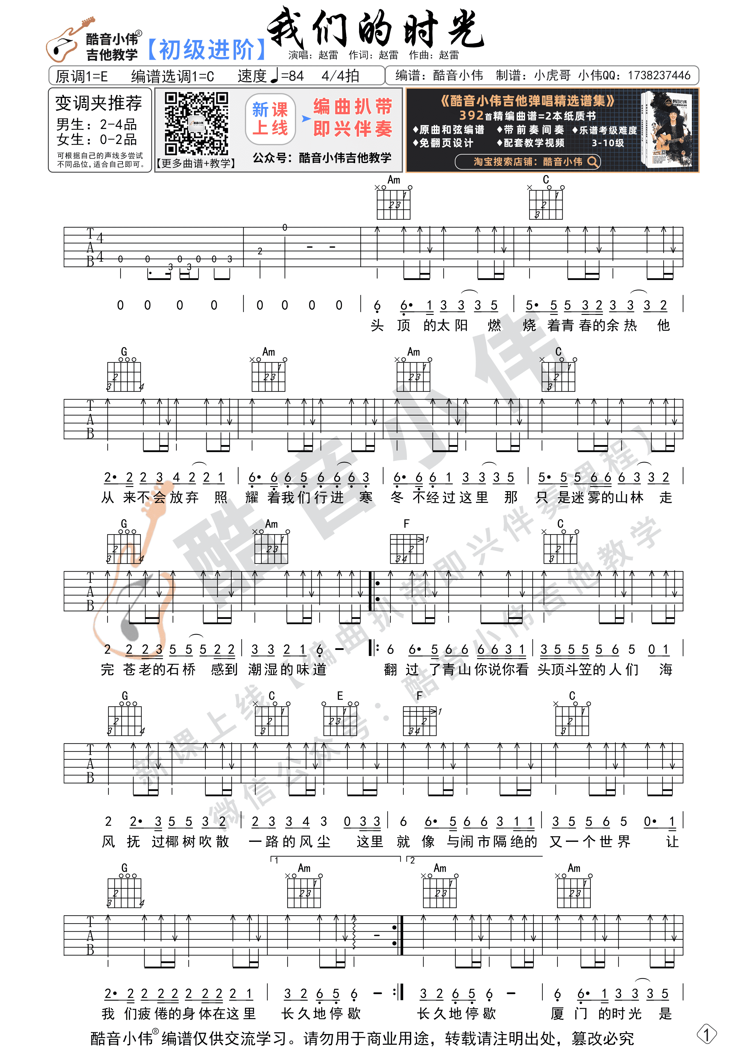 赵雷 - 我们的时光(新手初级进阶版 酷音小伟吉他教学) [简单版 酷音小伟 弹唱] 吉他谱