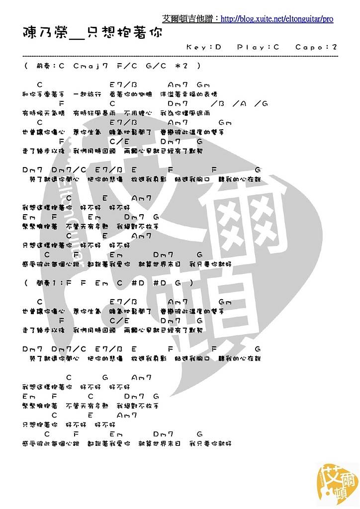 陈乃荣 - 只想抱着你 [和弦谱] 吉他谱