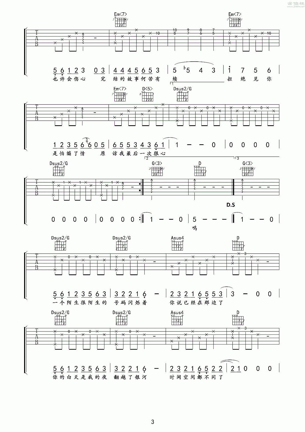 许嵩 - 不煽情 [弹唱] 吉他谱