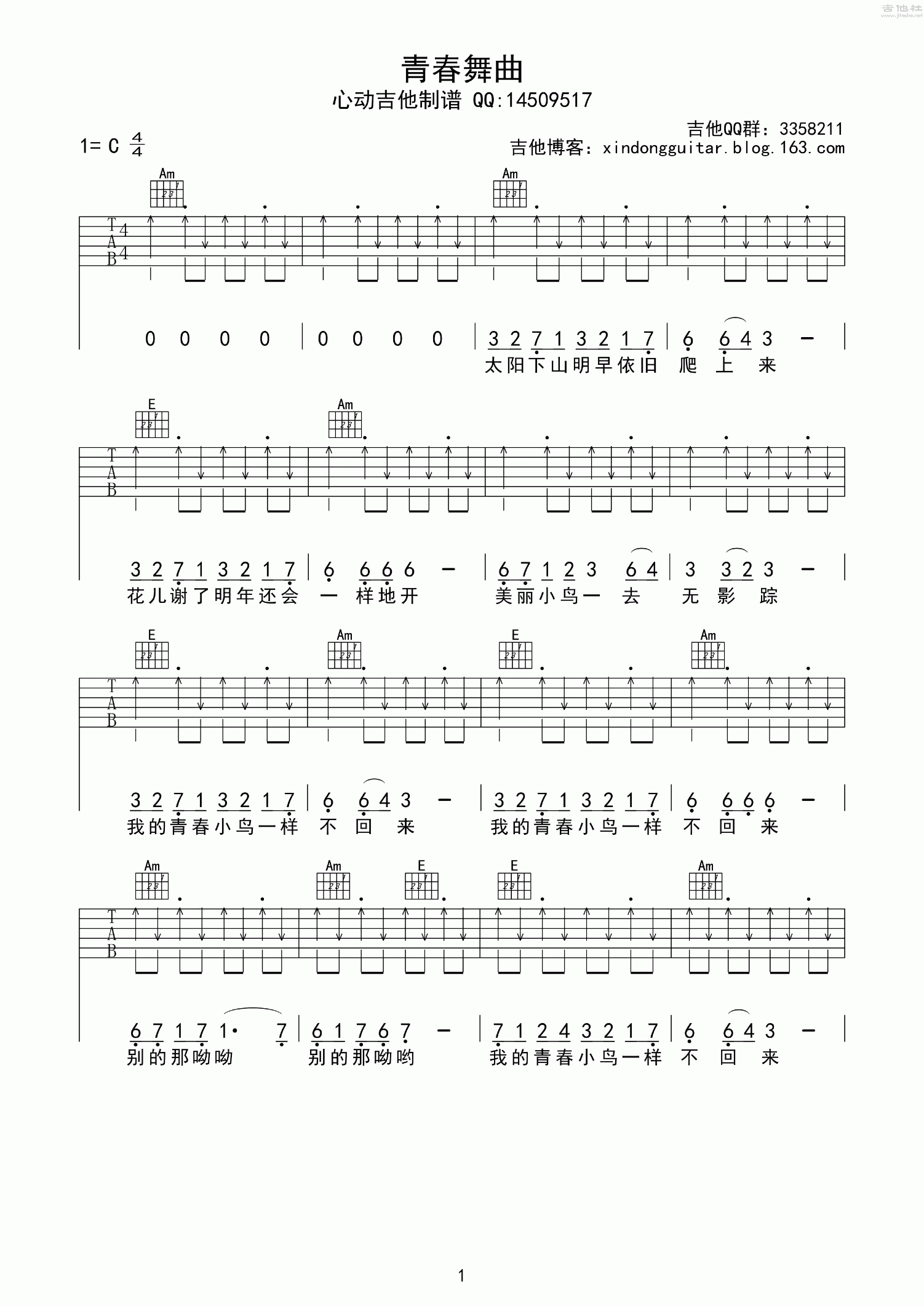王洛宾 - 青春舞曲 [弹唱] 吉他谱