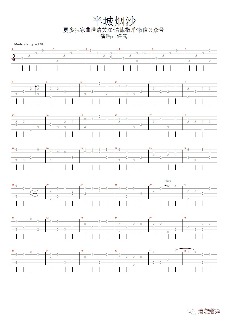 许嵩 - 半城烟沙 [指弹 简单版] 吉他谱