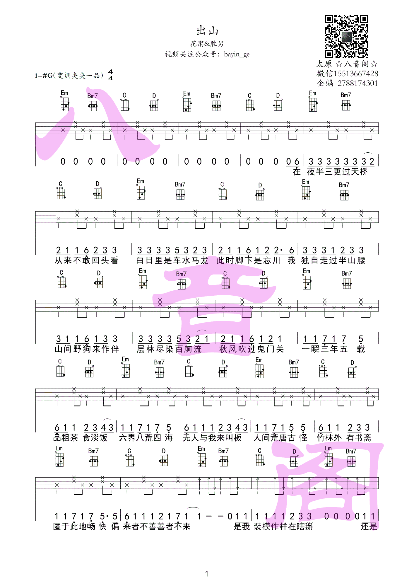花粥 - 出山 [弹唱 尤克里里 简单版] 吉他谱