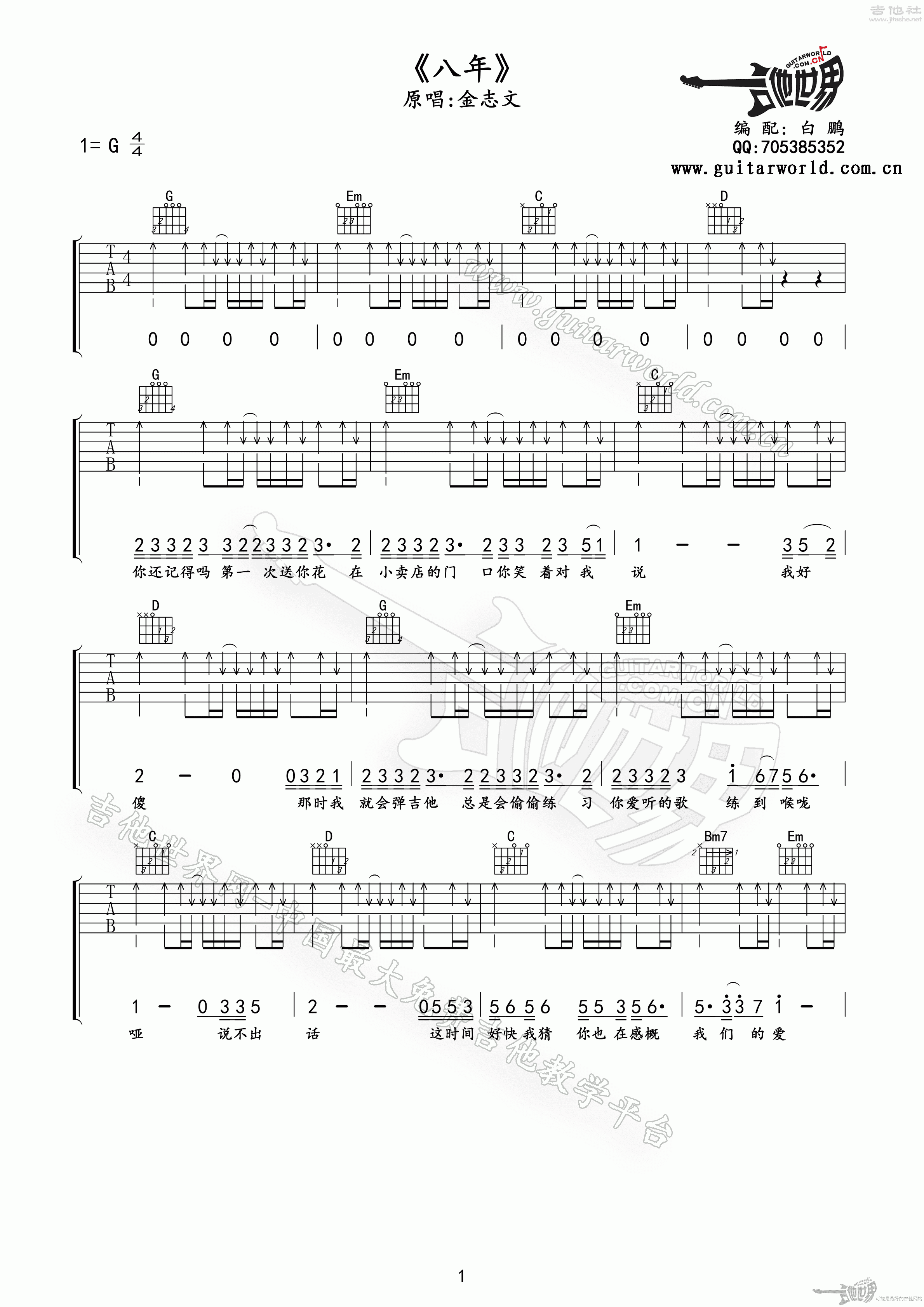 金志文 - 八年 [弹唱] 吉他谱