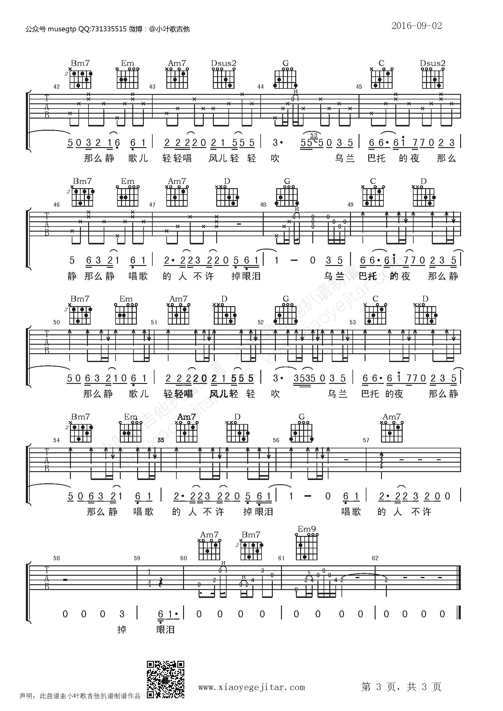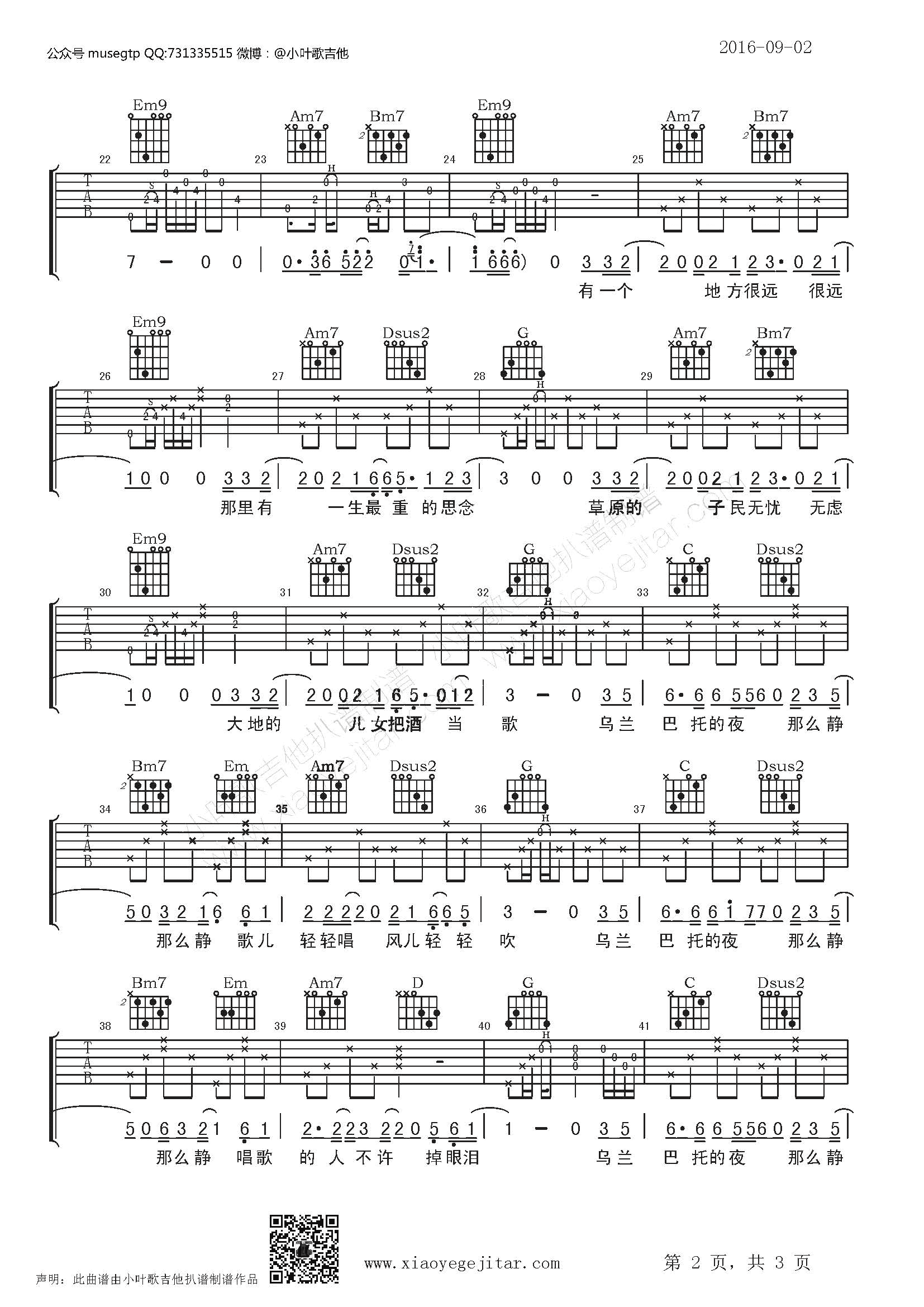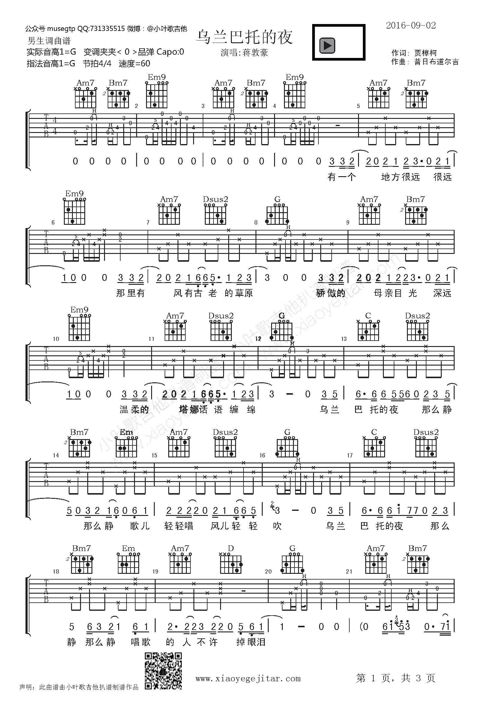 蒋敦豪 - 乌兰巴托的夜(G调吉他弹唱谱 原版记录) [弹唱 G调] 吉他谱