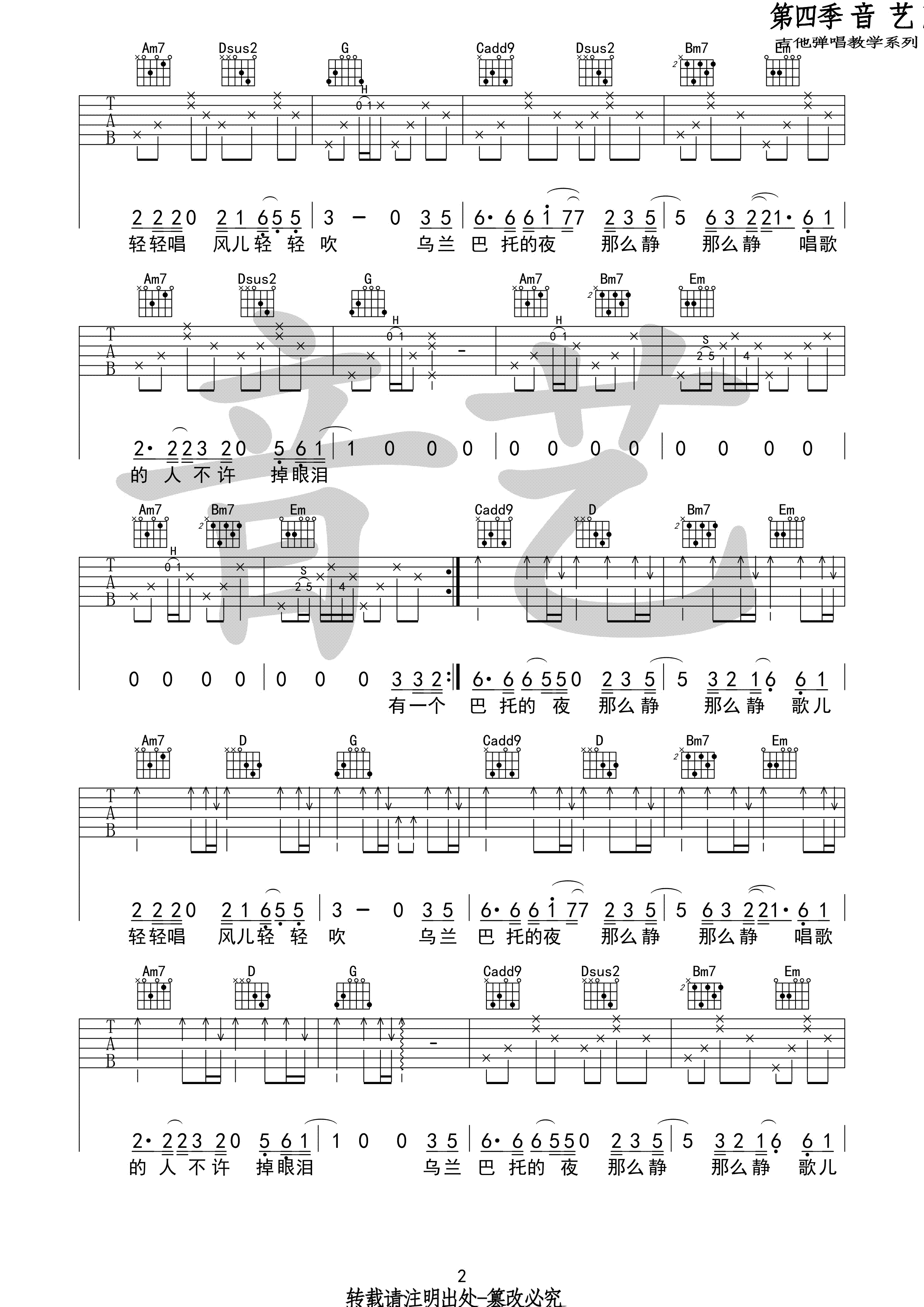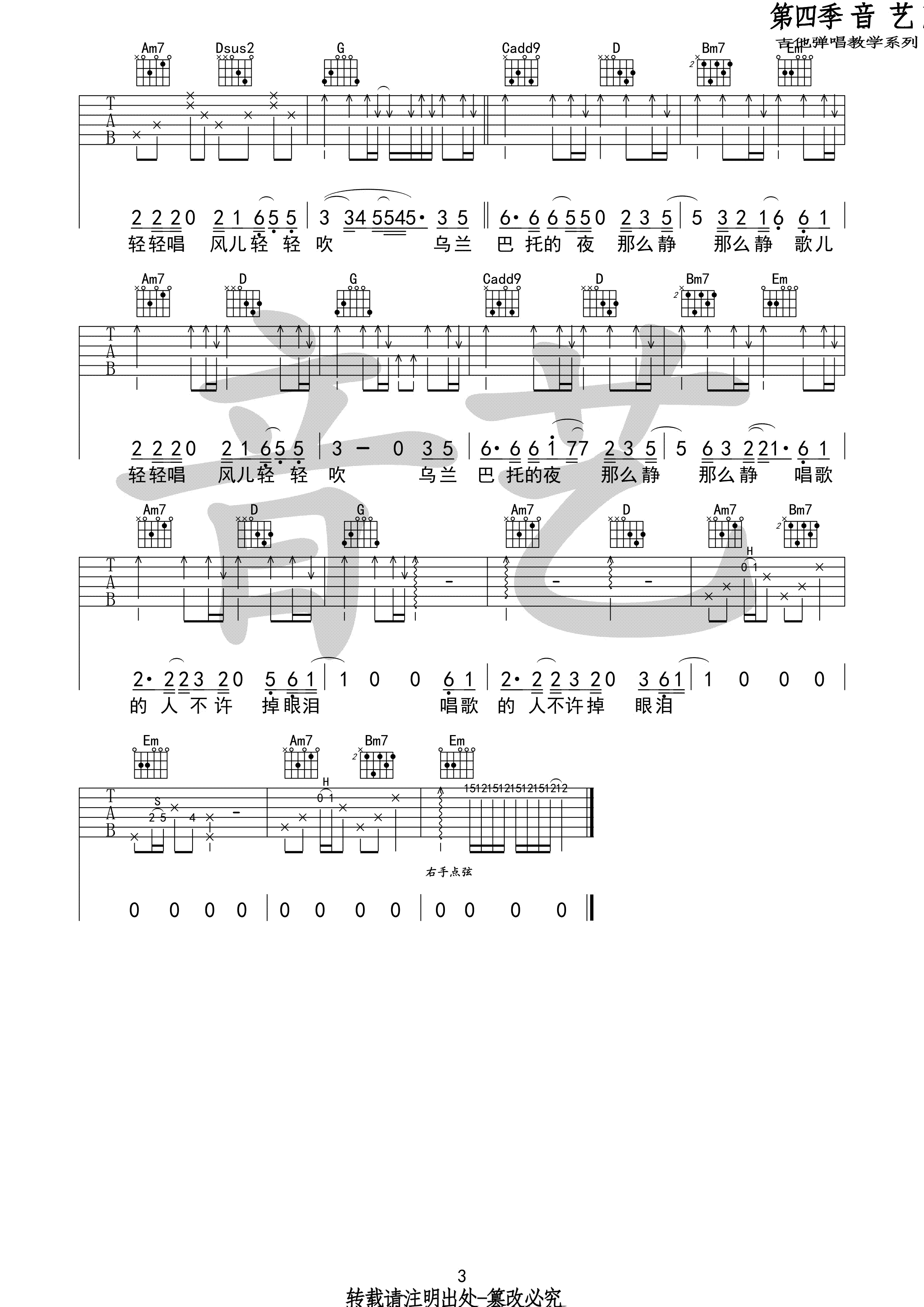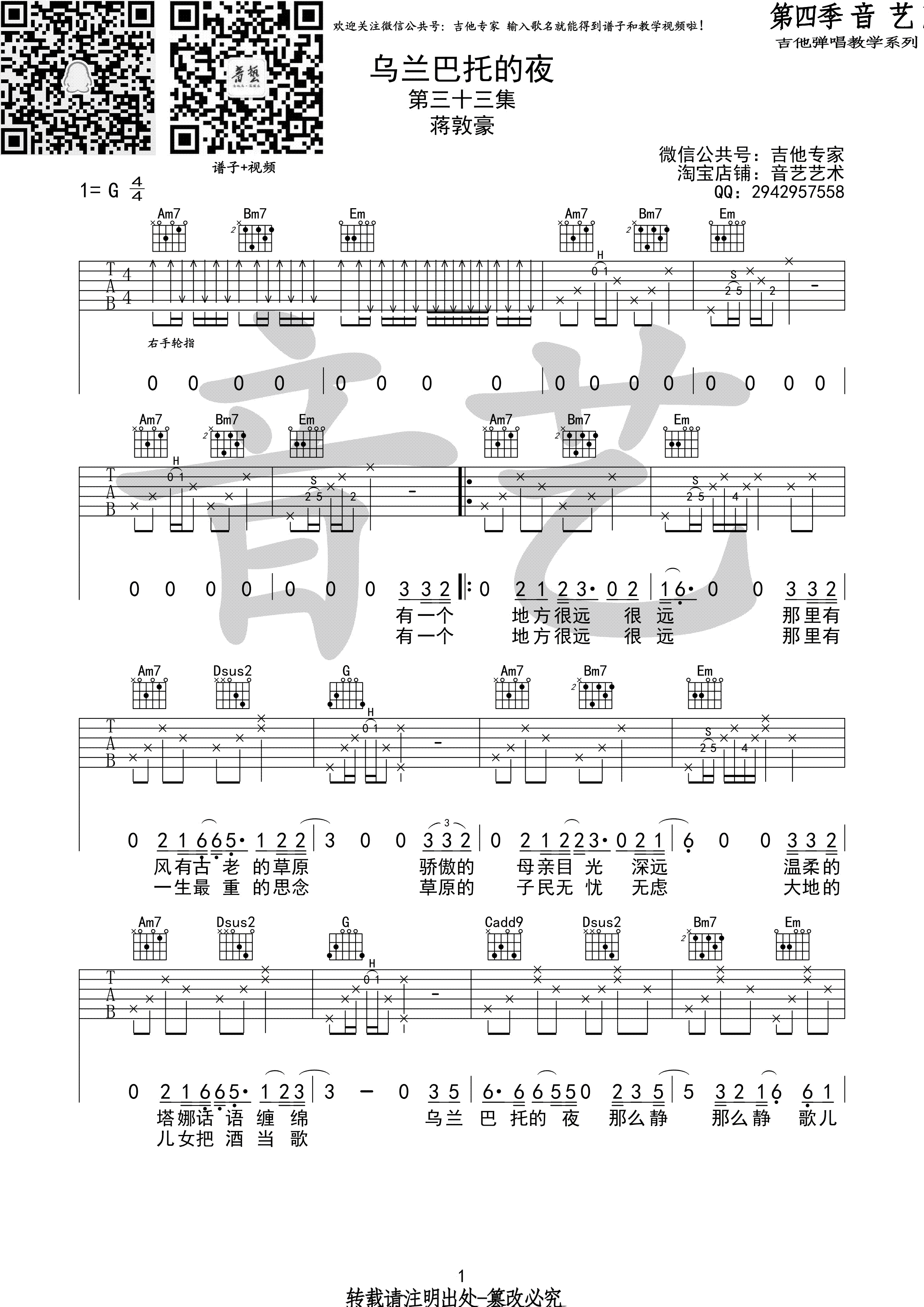 蒋敦豪 - 乌兰巴托的夜 [弹唱] 吉他谱