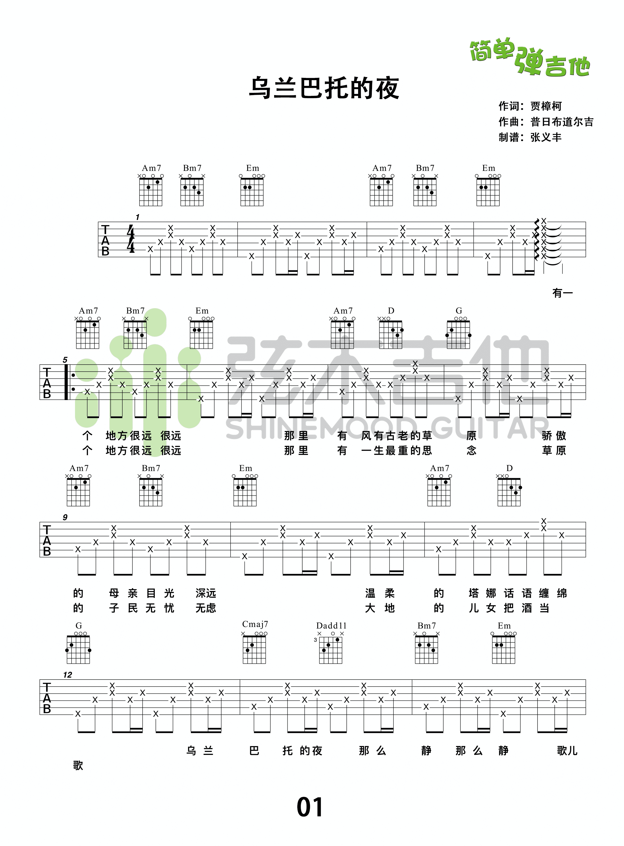 蒋敦豪 - 乌兰巴托的夜(弦木吉他简单弹吉他:第74期) [弹唱 蒋敦豪 简单版 教学] 吉他谱