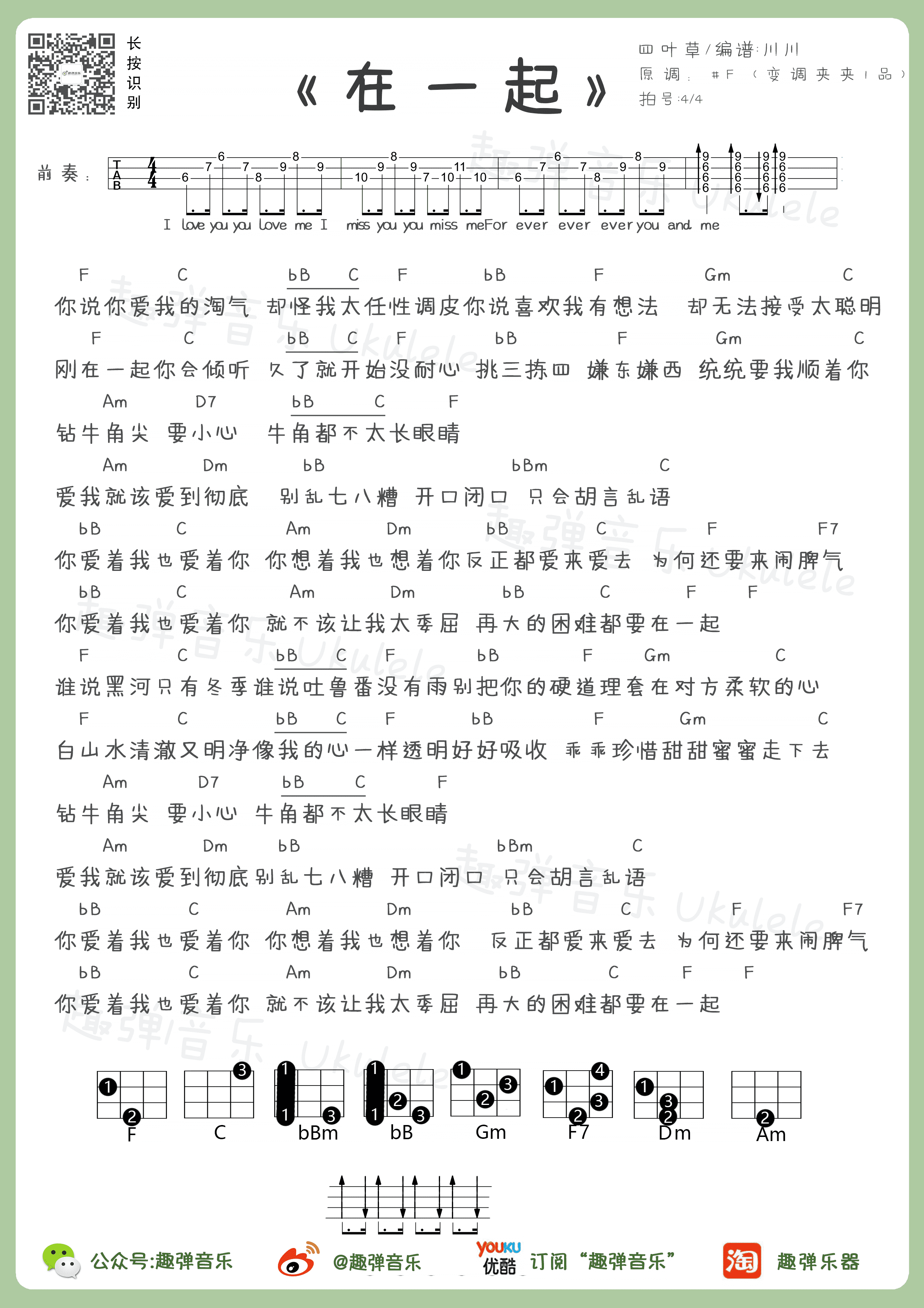 朱主爱 - 在一起 [尤克里里 弹唱] 吉他谱