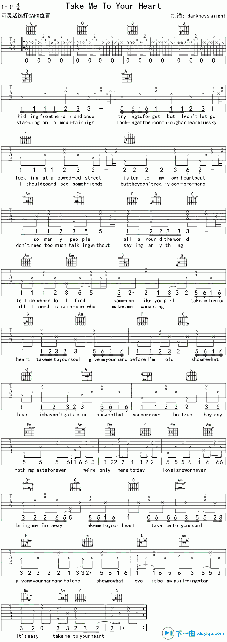 Michael Learns To Rock - Take me your hert (新手上手版) [弹唱] 吉他谱